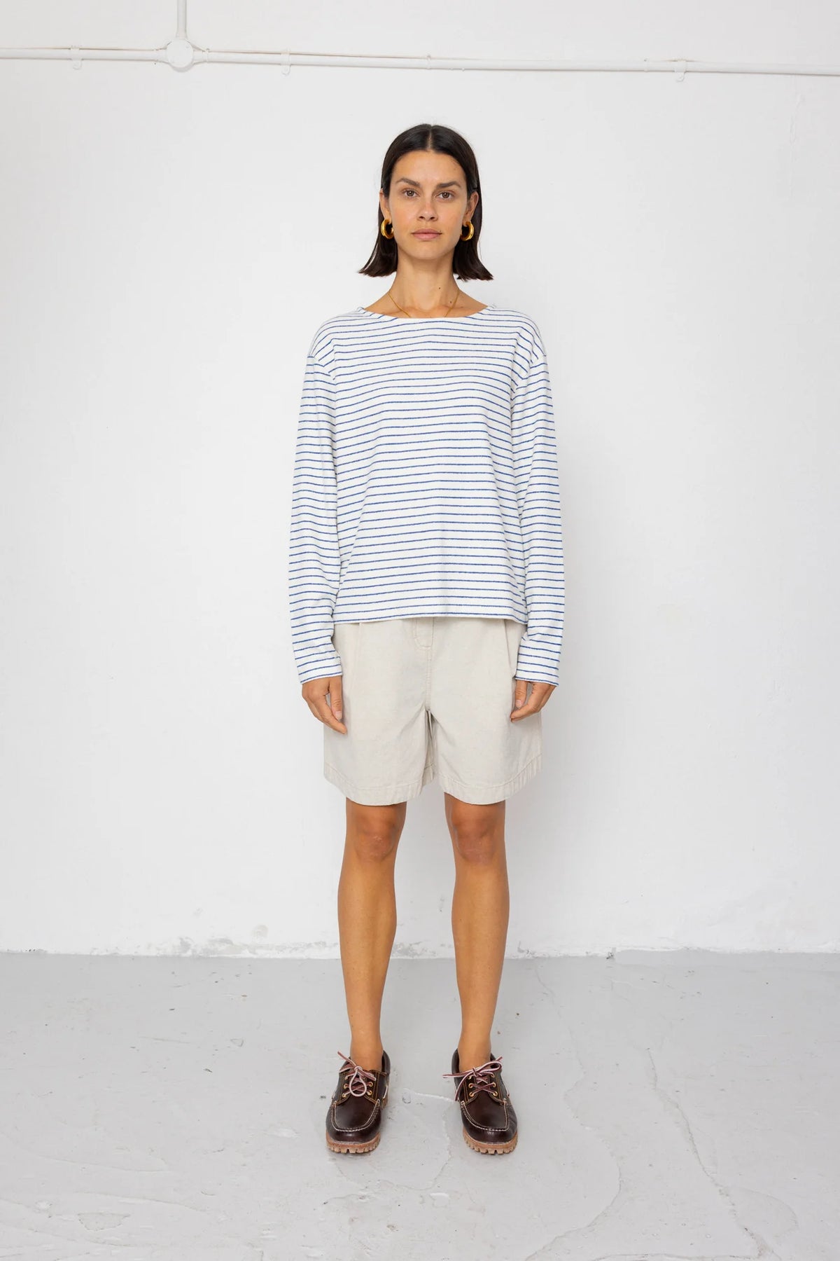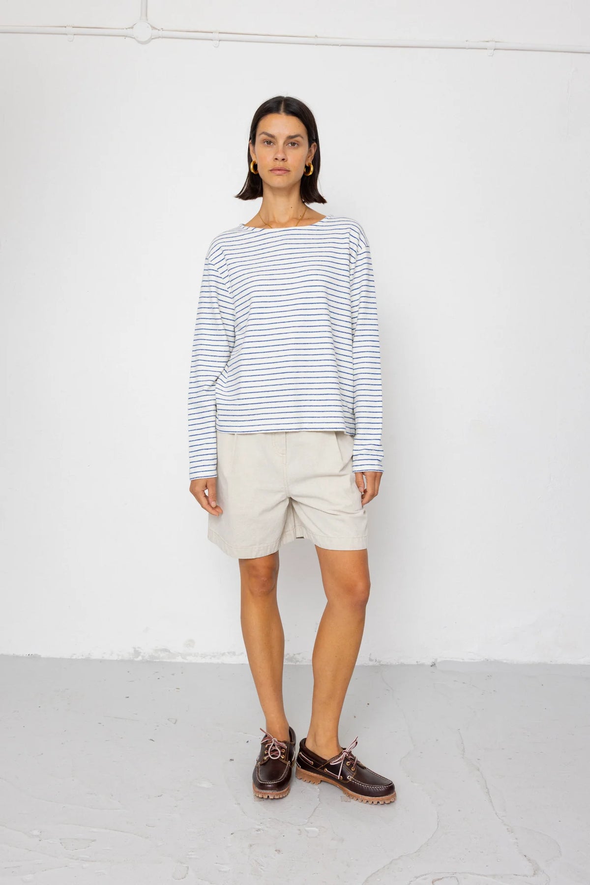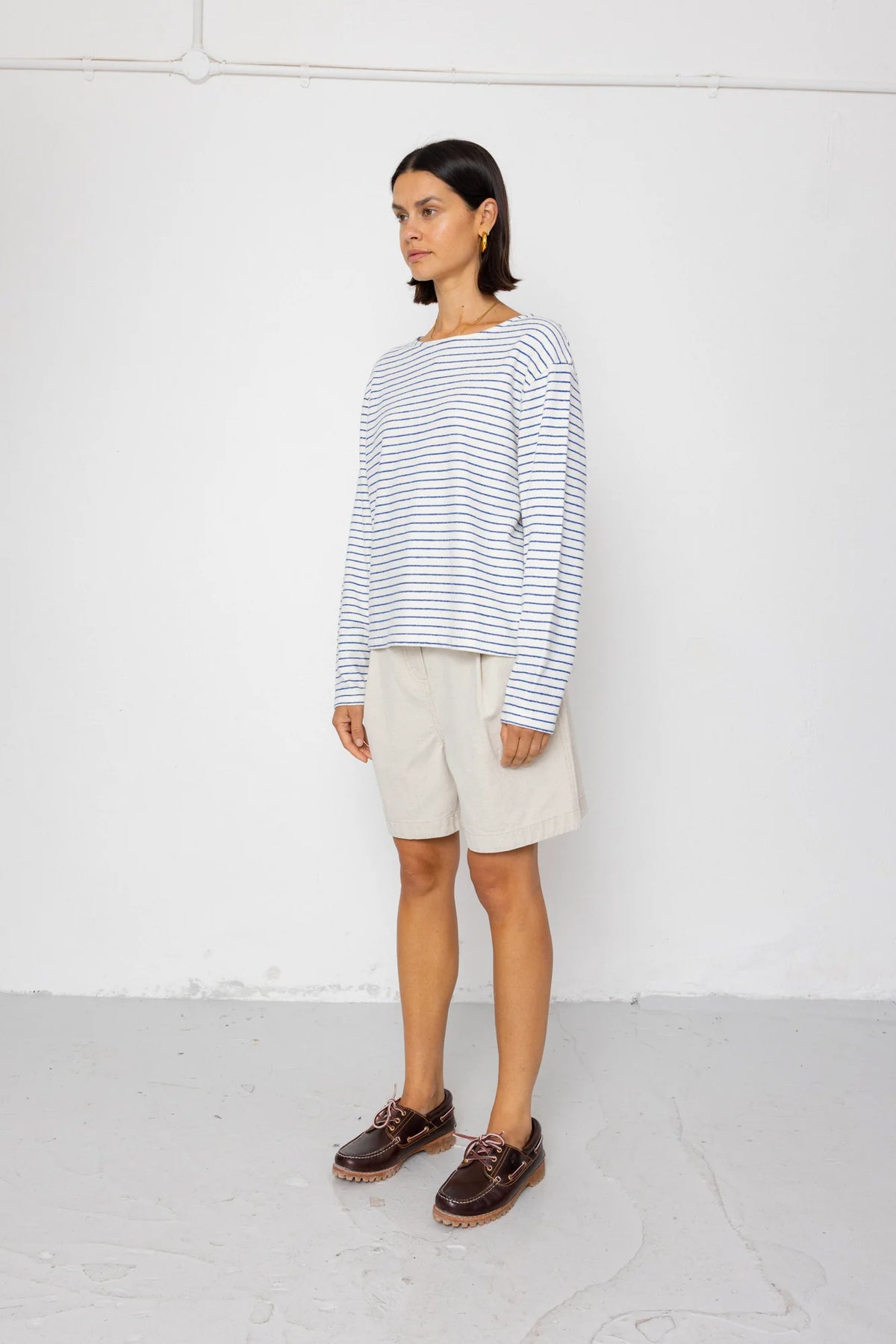 Boat Neck T Shirt Ecru / Bright Blue