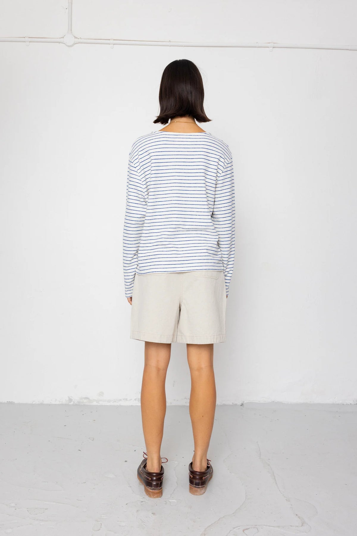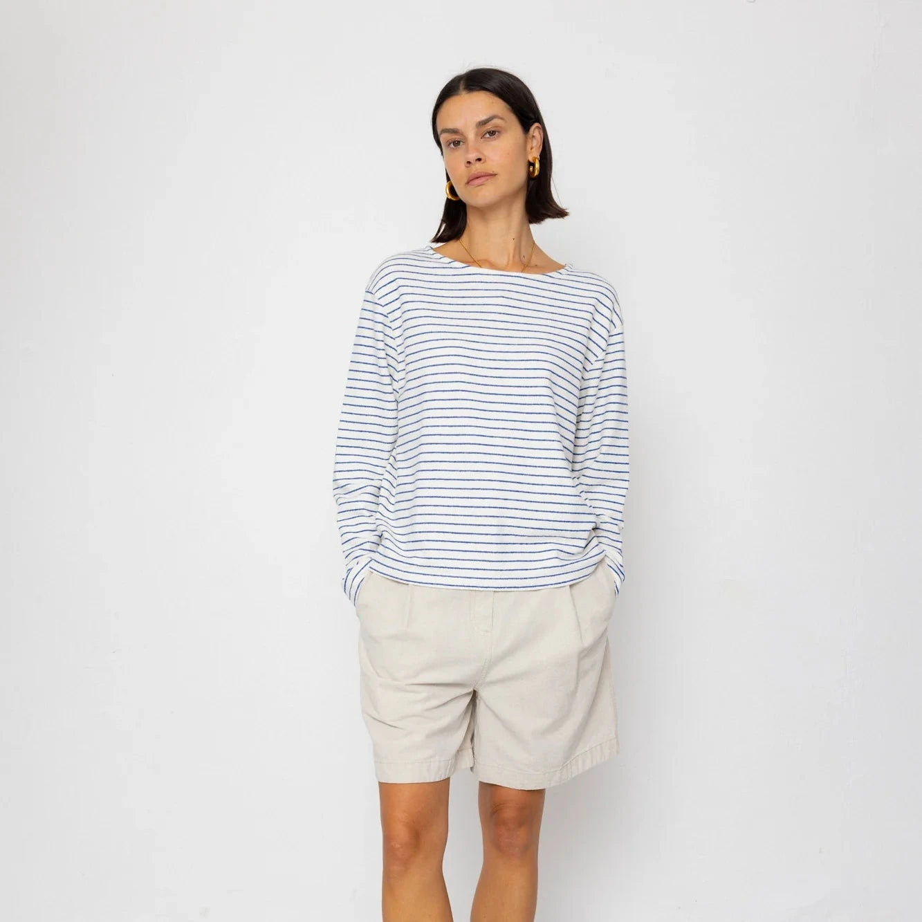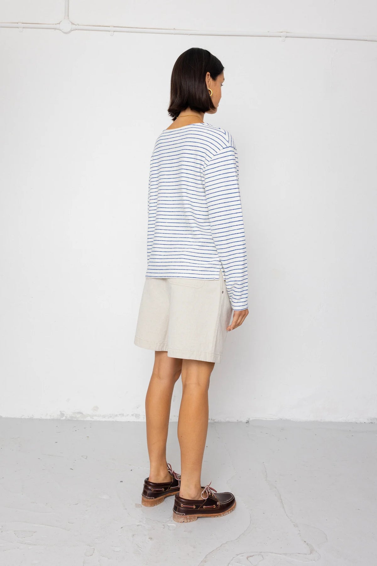 Boat Neck T Shirt Ecru / Bright Blue