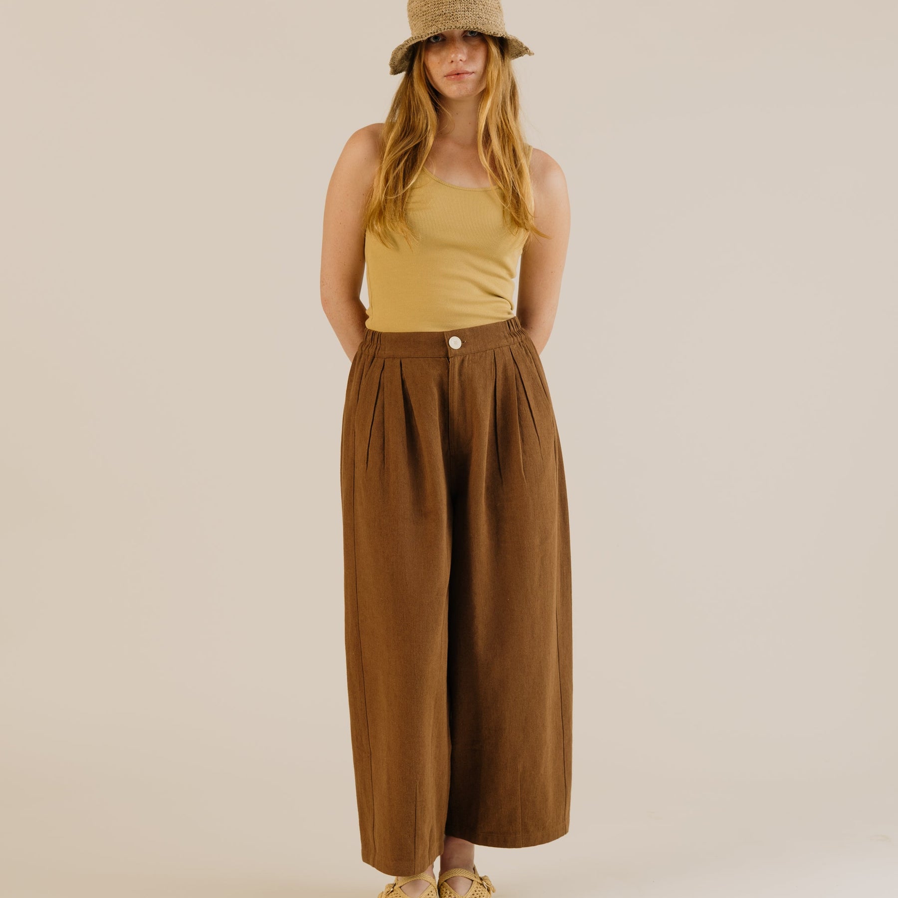 The Leila Trousers are crafted from the most beautiful cotton linen blend fabric with a lovely texture.