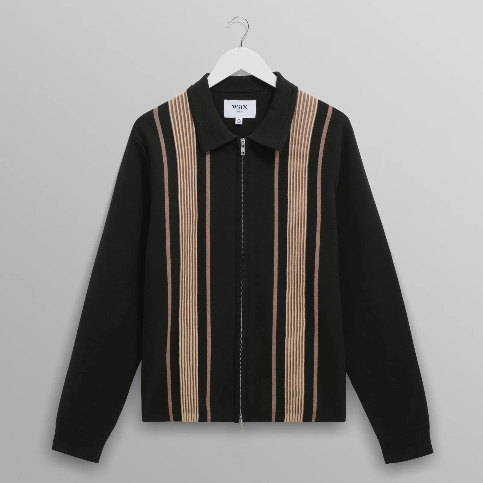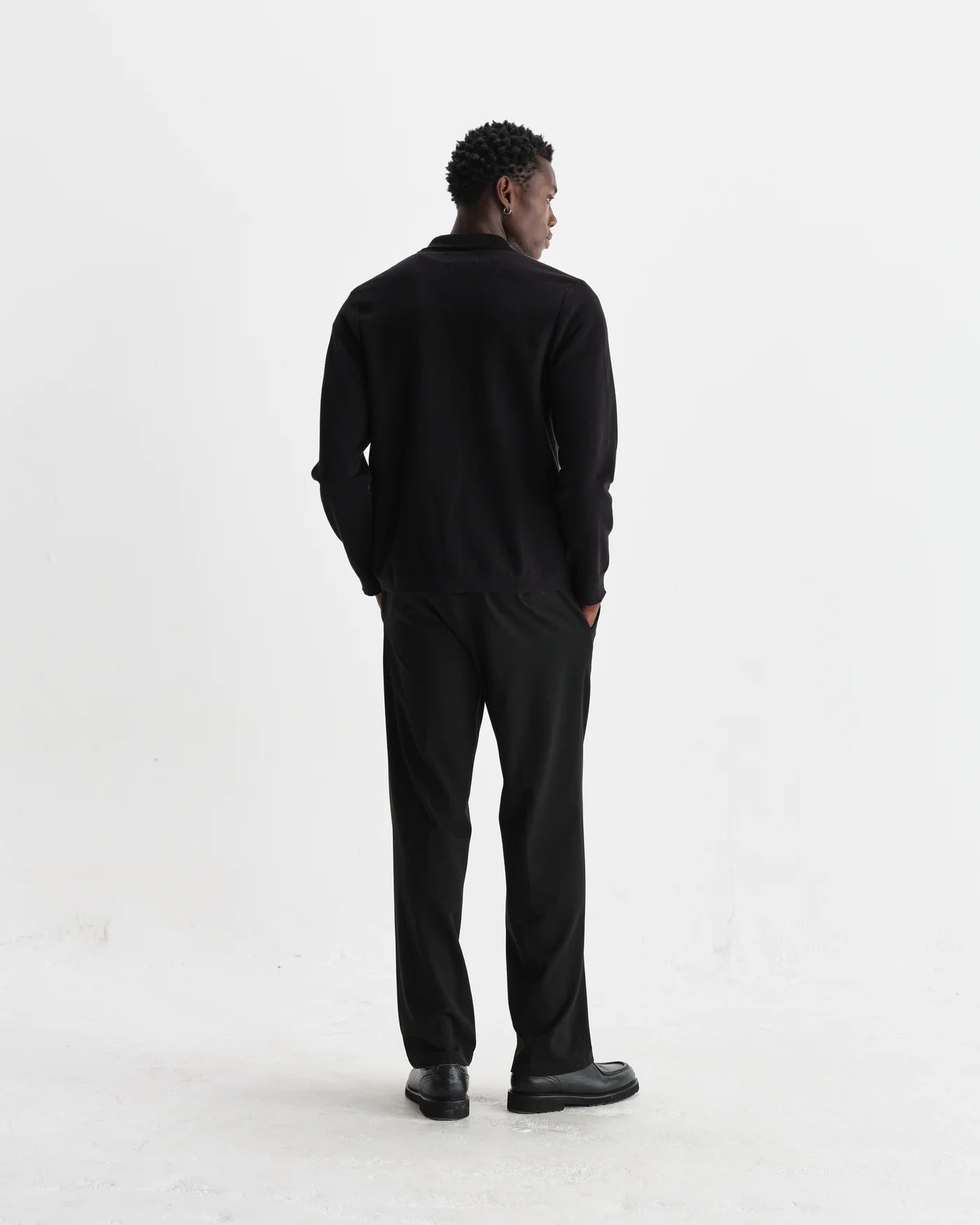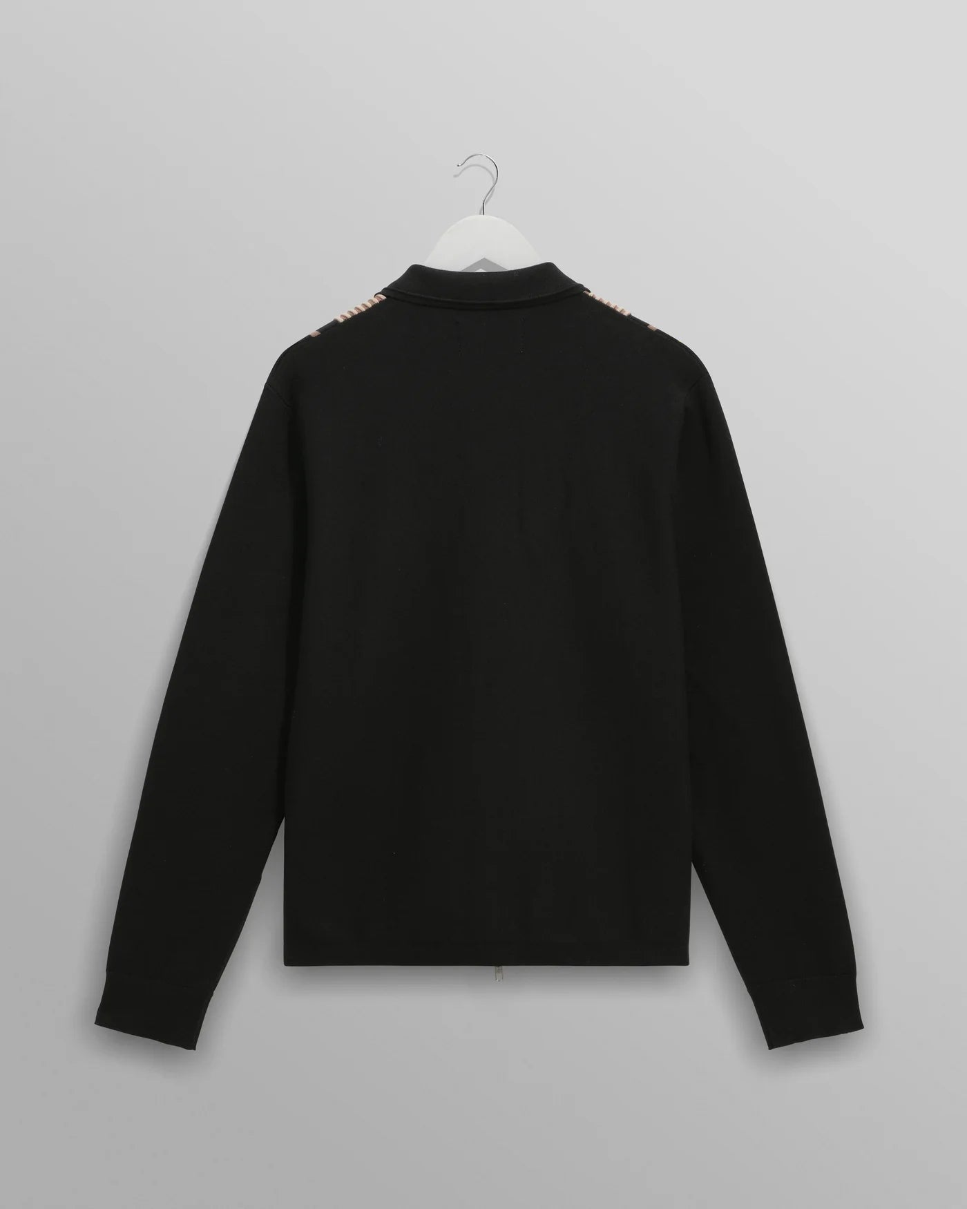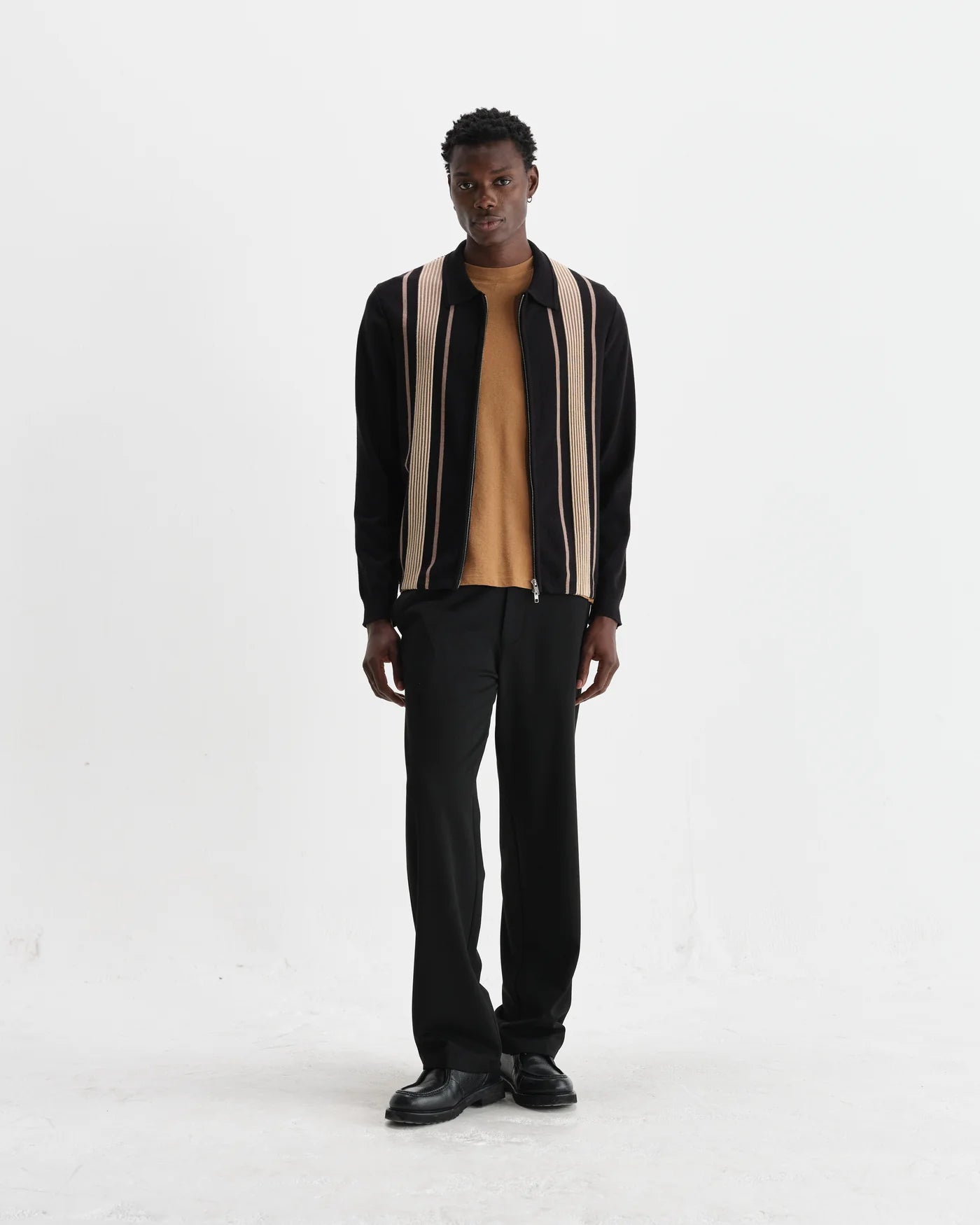 The Lennox is a modern take on the timeless zip polo. Crafted from a soft cotton blend with a touch of cashmere in a milano knit construction, it offers a warmer, more luxurious handfeel. It features tonal rib stripe detailing, ribbed cuffs and collar, and a double-ended zip for versatile styling. Finished in a clean black and beige colourway.