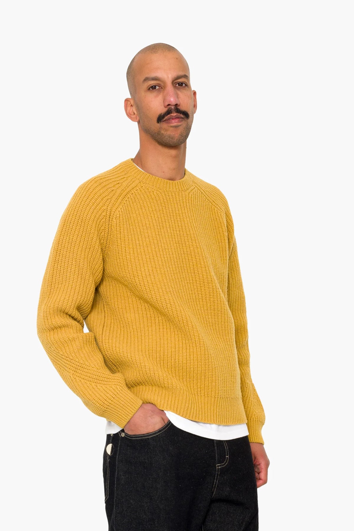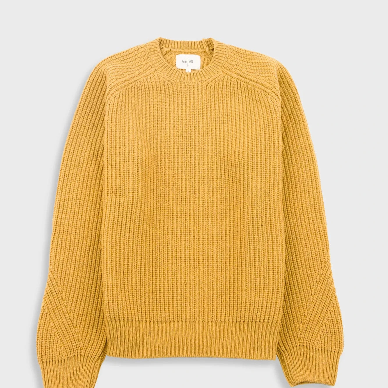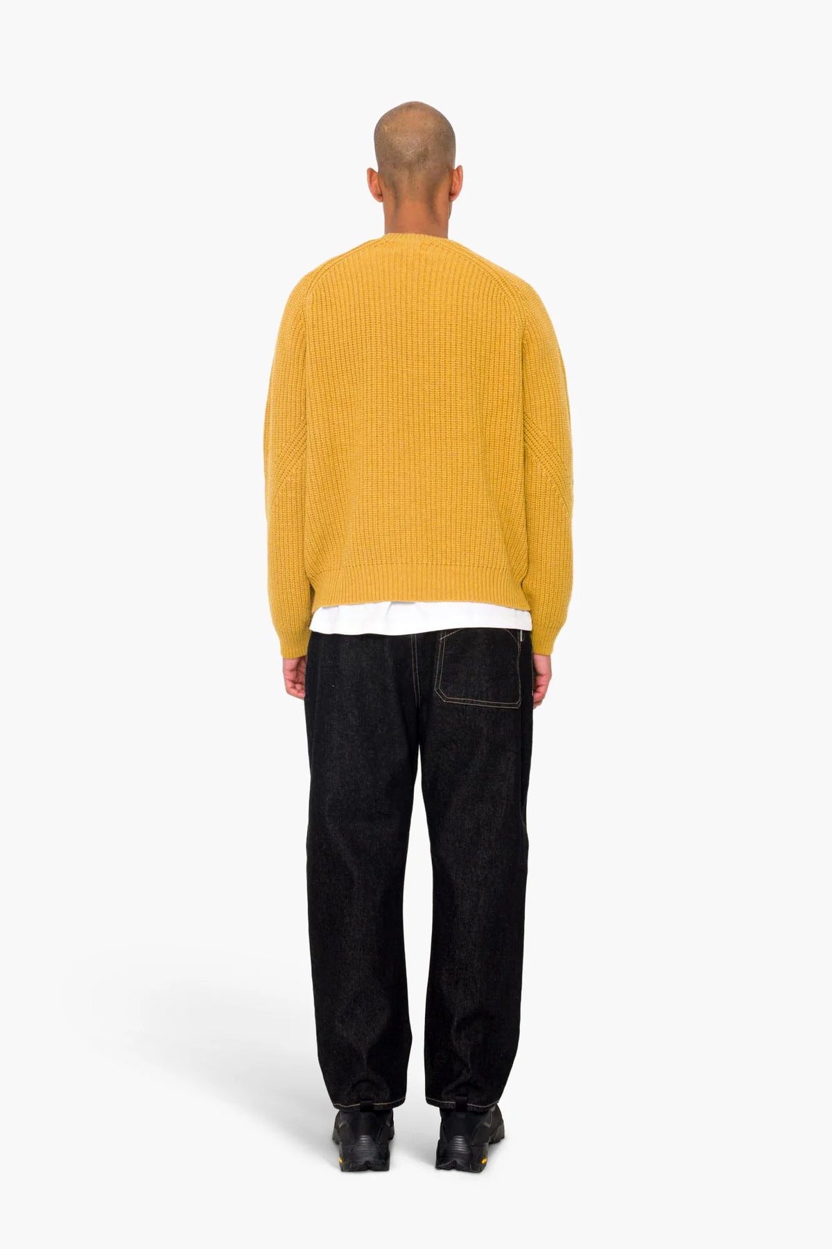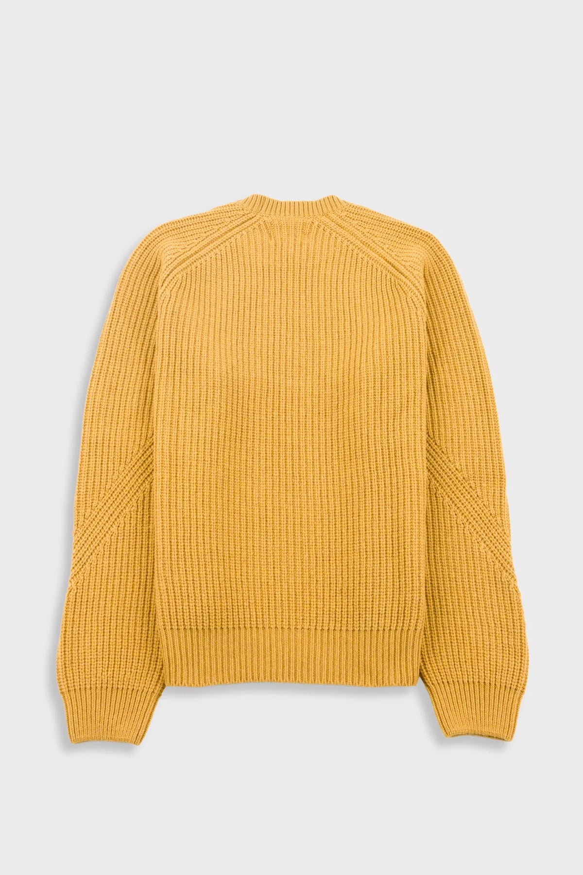 Oversized knitted crew neck, made using synthetic wrapped cotton yarns for added strength and textured finish.