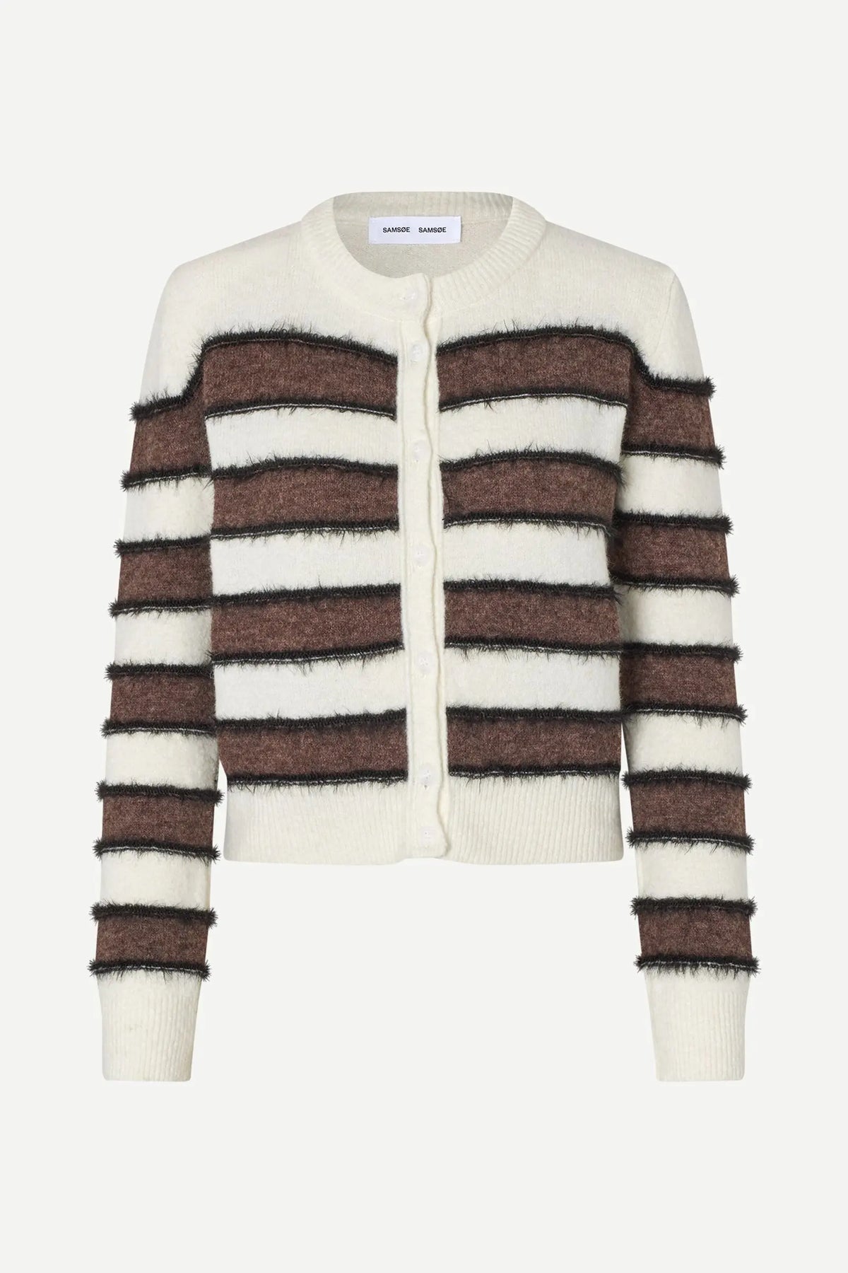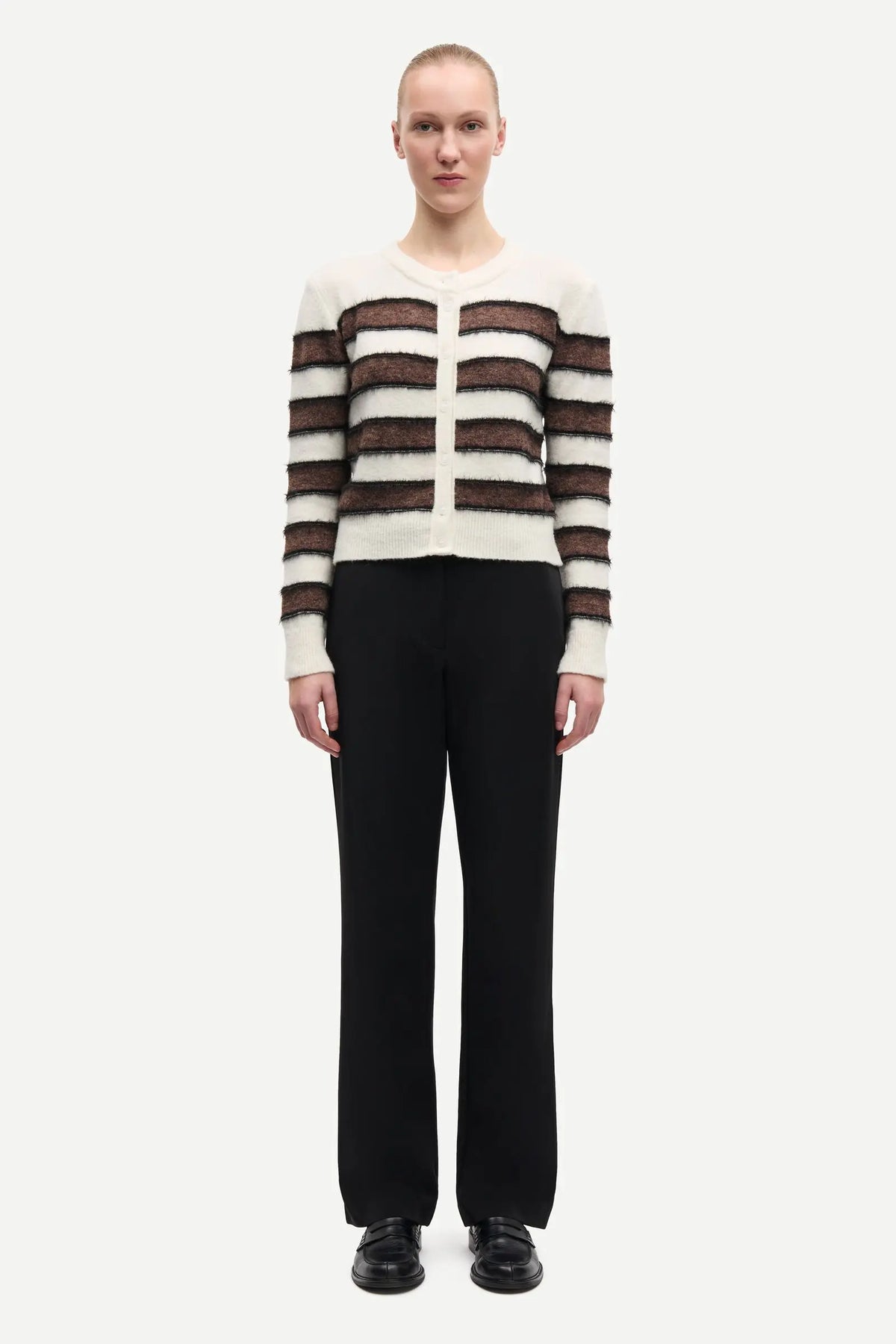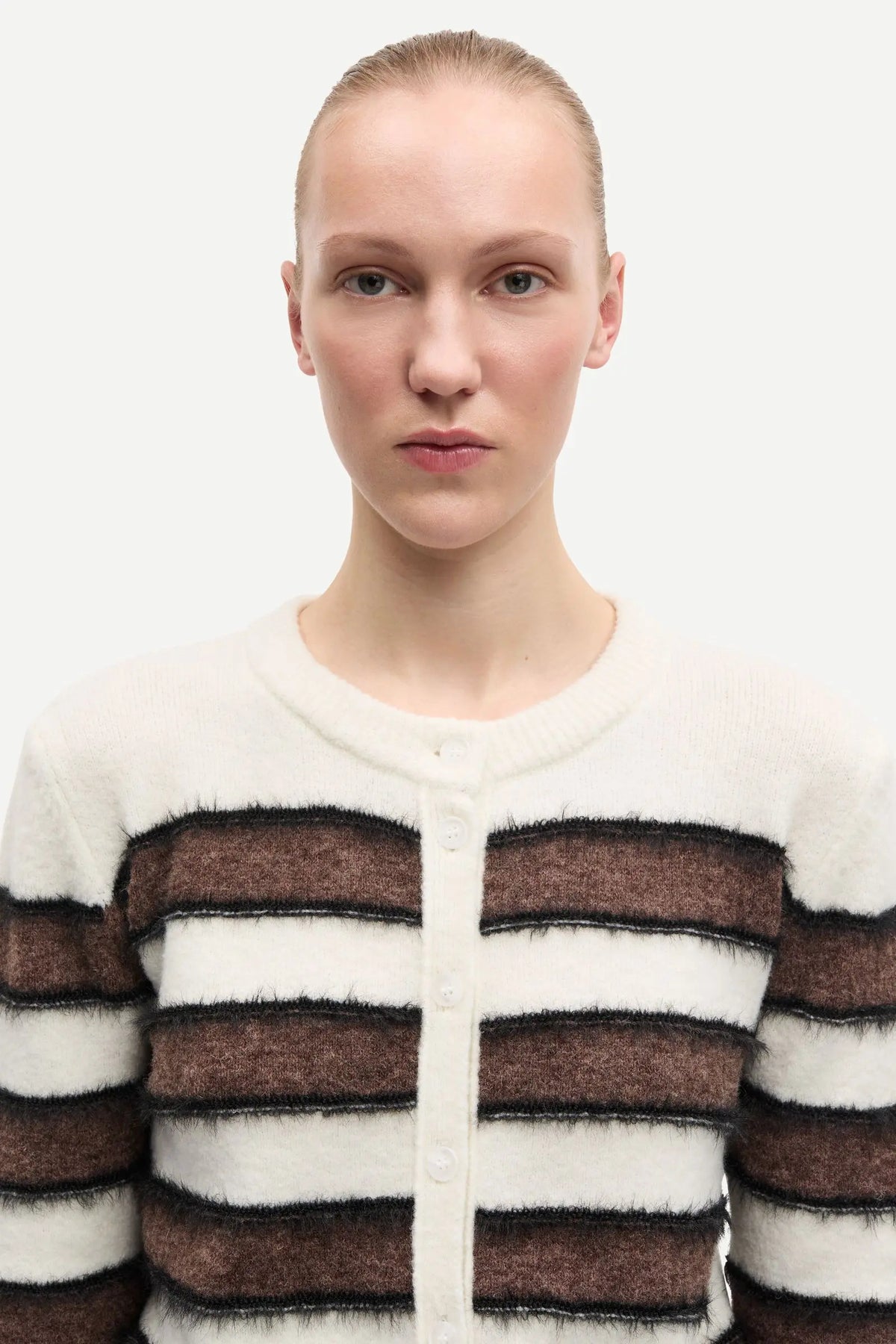 Striped cardigan with a regular fit. Button closure on the front. Rib-knitted collar, cuffs, and hem. Round neck. Brushed detailing. Main material made from a blend including alpaca wool and merino wool.
