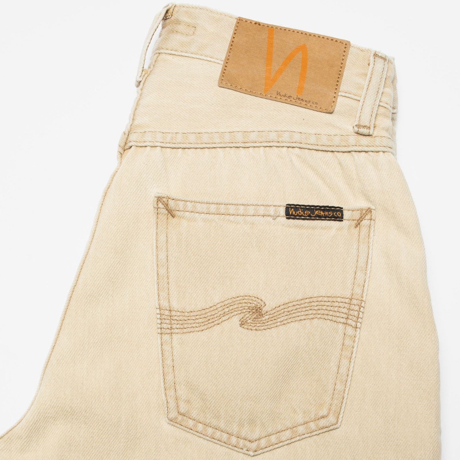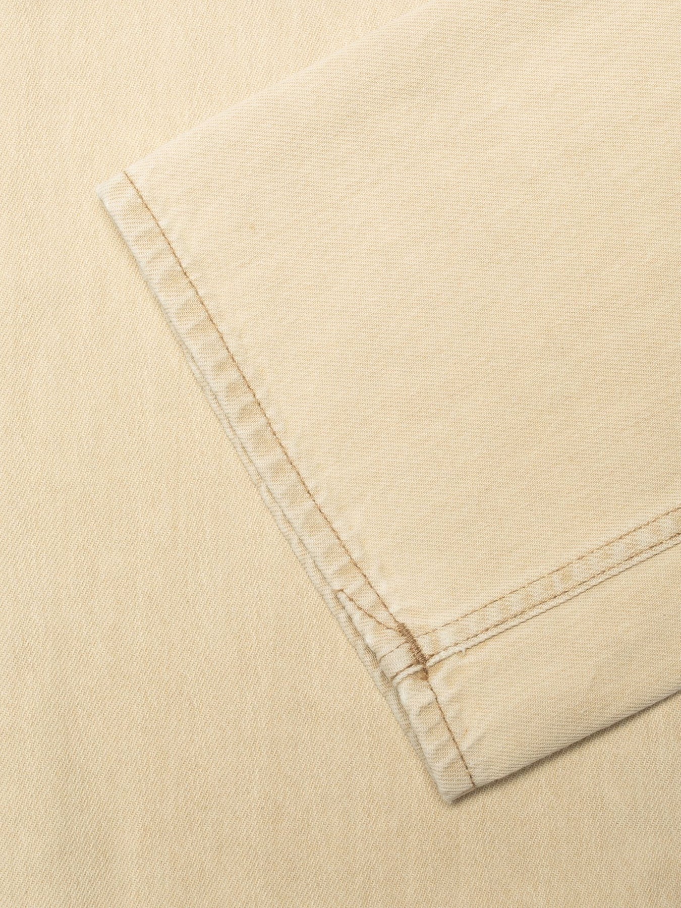 The denim is crafted from coarse yarns at a medium density, offering a dry yet comfortable hand with rich texture and just enough flow to feel easy without being soft.