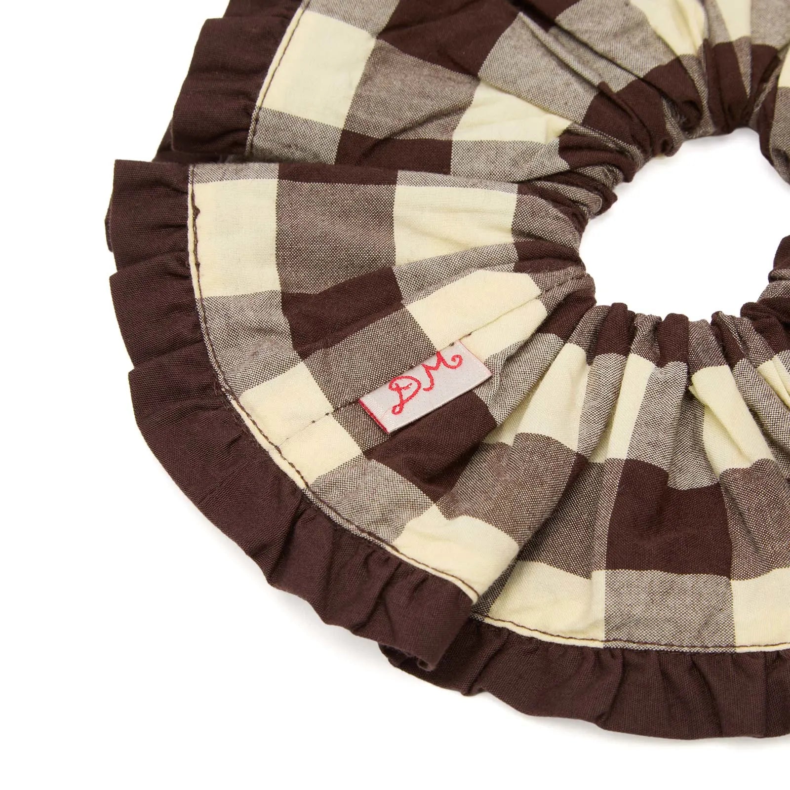This frill edge scrunchie takes the supersize hair‑accessory trend and runs with it, transforming a simple tie into a standout styling piece. The exaggerated proportions give those soft, fluttery frills even more presence, while the bold gingham check channels the brand’s signature playfulness. It’s the kind of oversized accent that instantly lifts a look, adding personality without overpowering your style. A fun, easy way to tap into the big‑scrunchie moment.