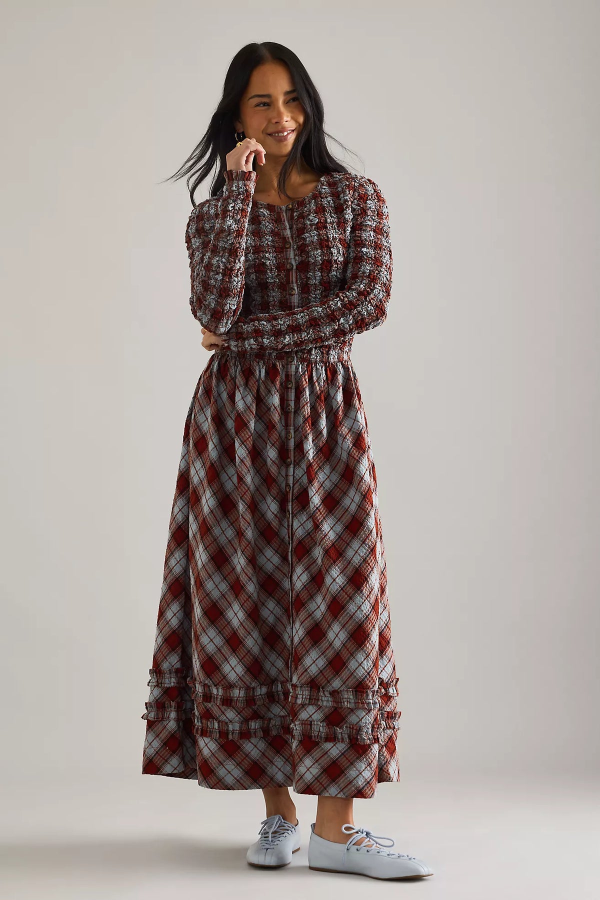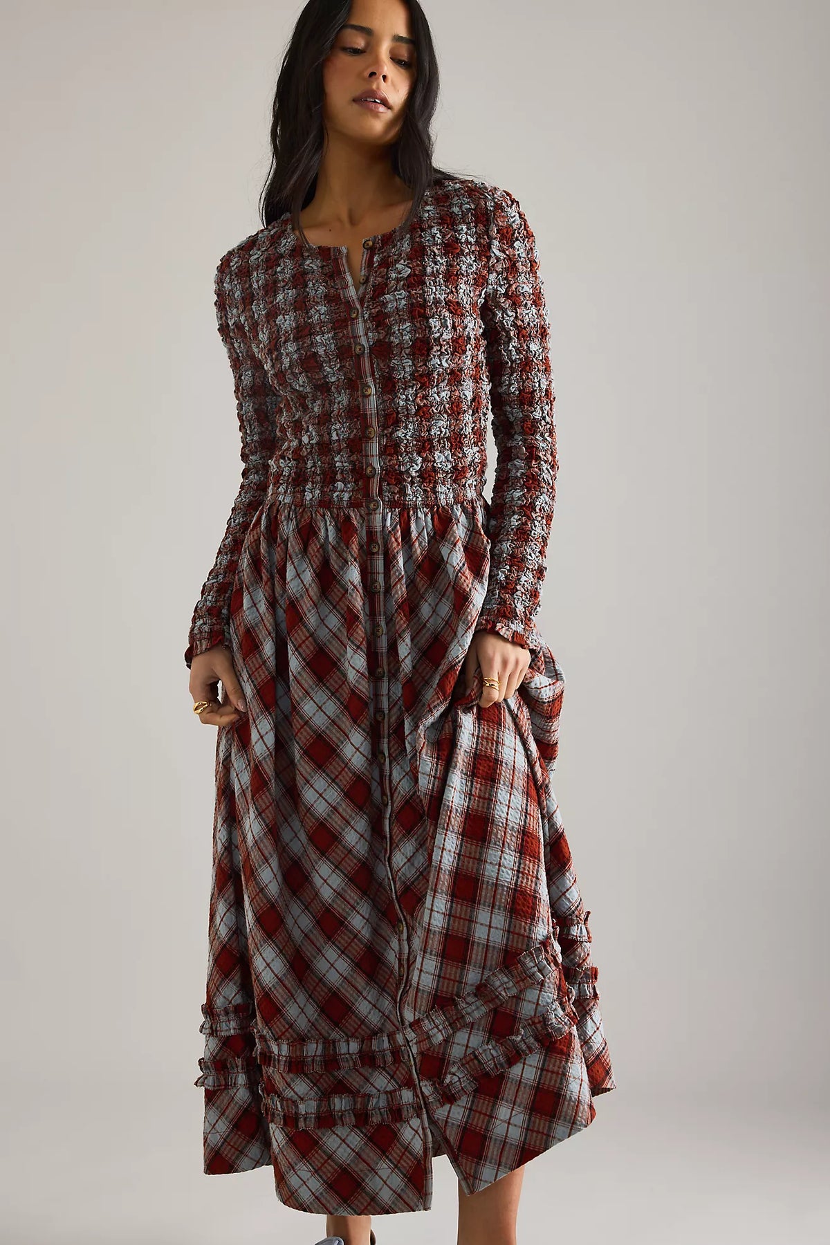 - Tiered ruffle hem for movement and charm