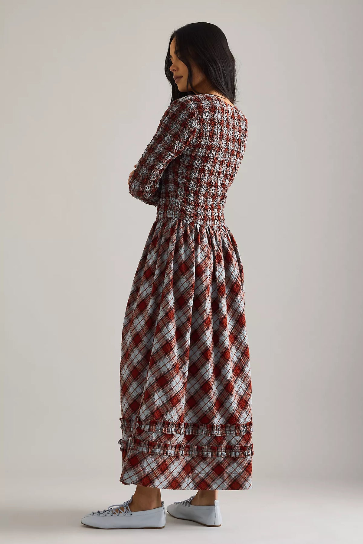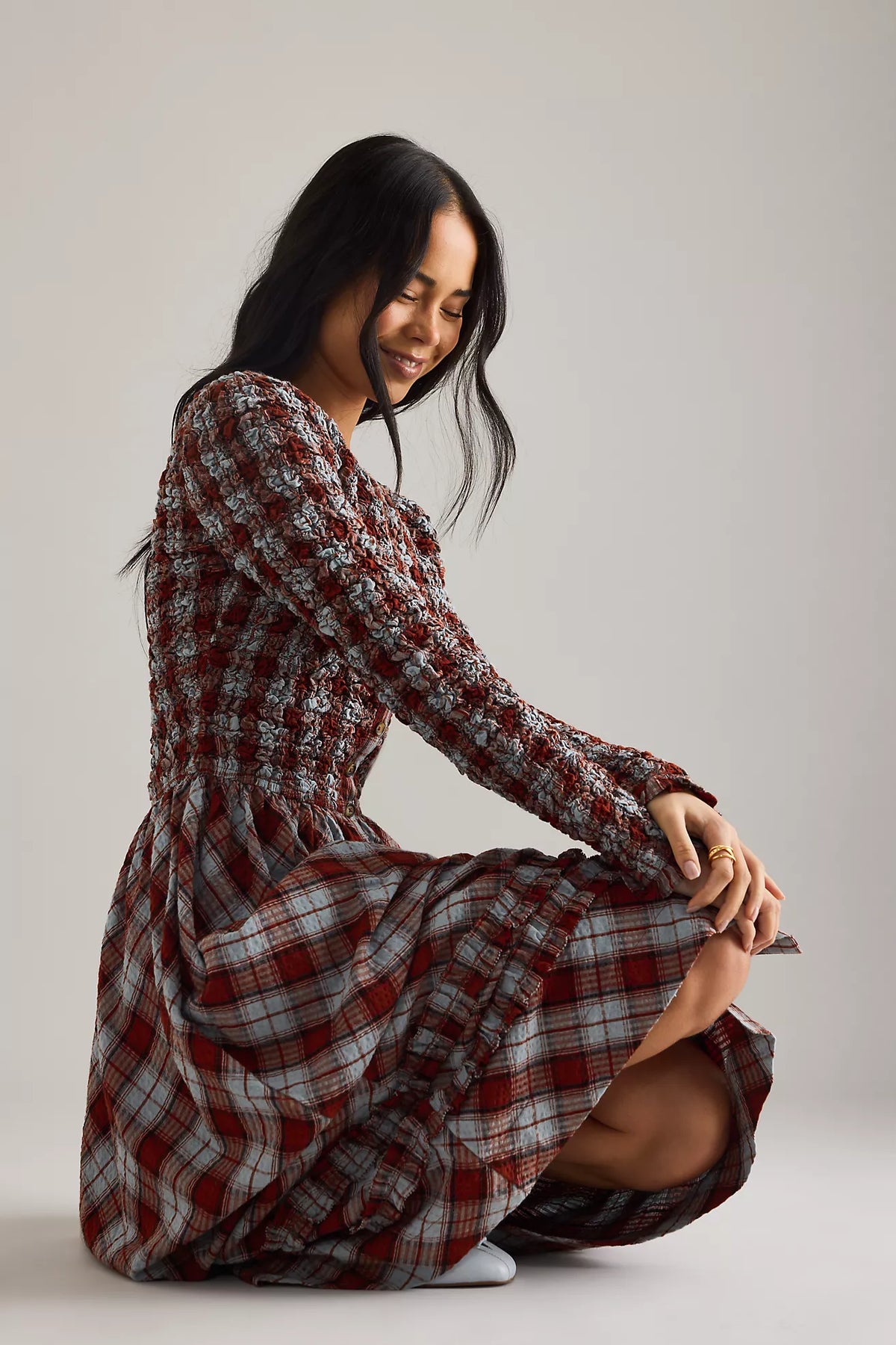 - Smocked waist for a gentle, comfortable shape