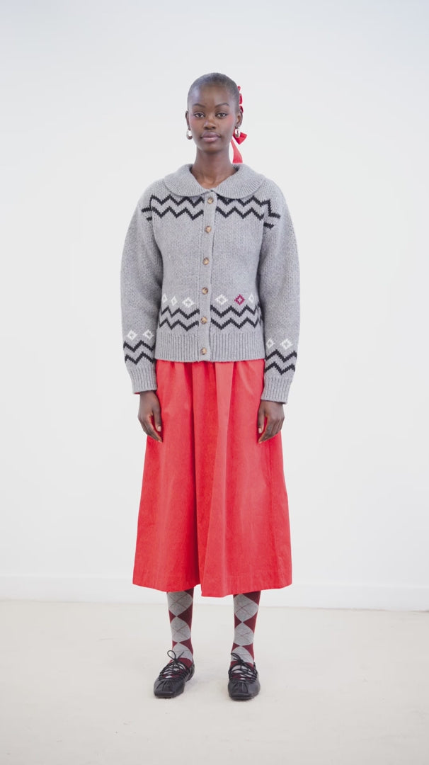 Cecily Collar Cardigan Bunny Intarsia Grey