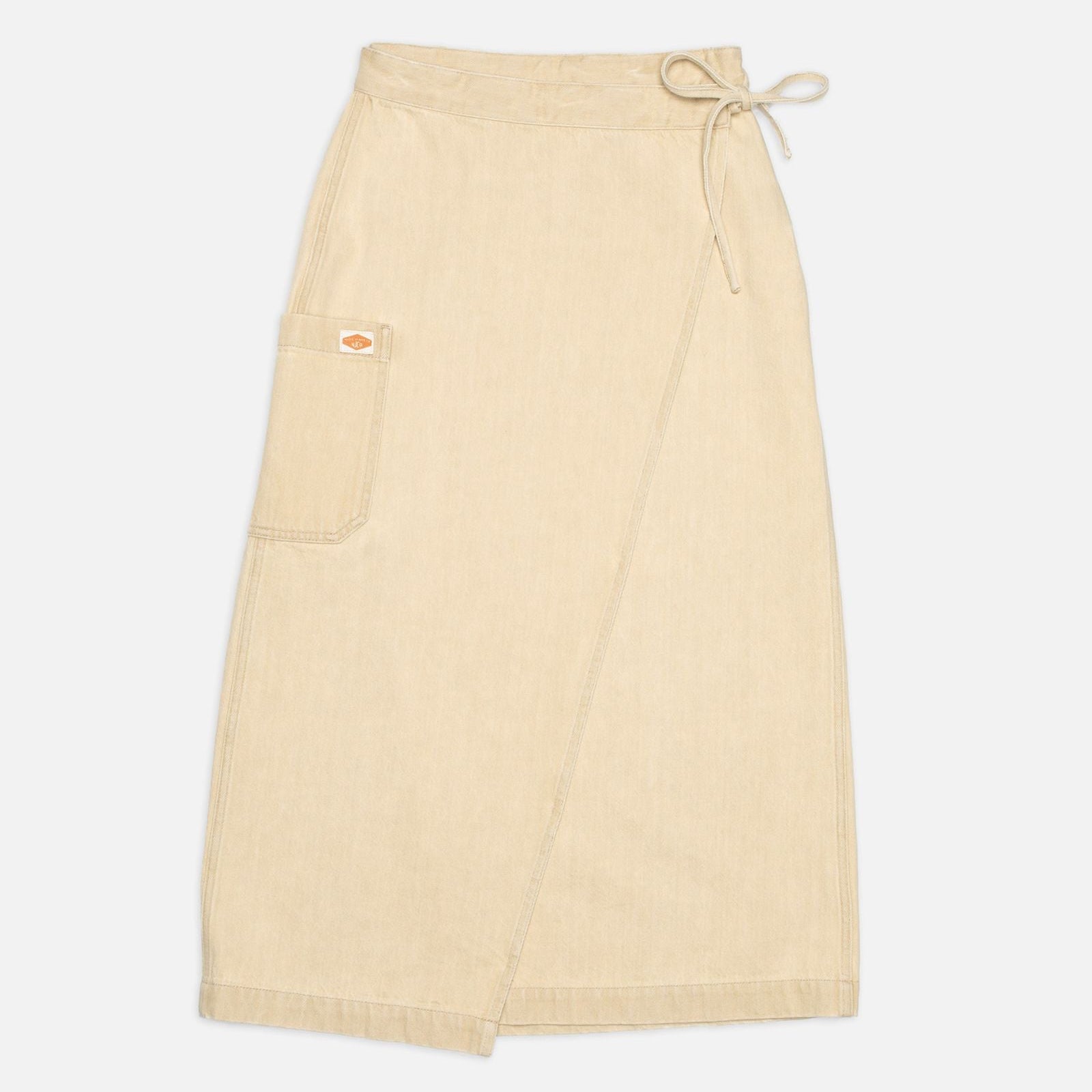 Regular-fit, high-waist denim skirt in a bright, sun-faded brown wash. Irma features a wrap-around design with an adjustable waistband strap and a spacious, rectangular side pocket that adds both function and character.