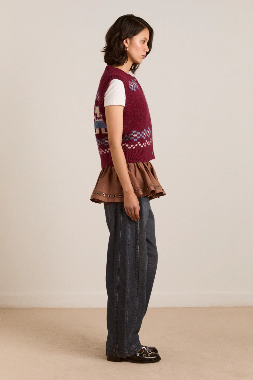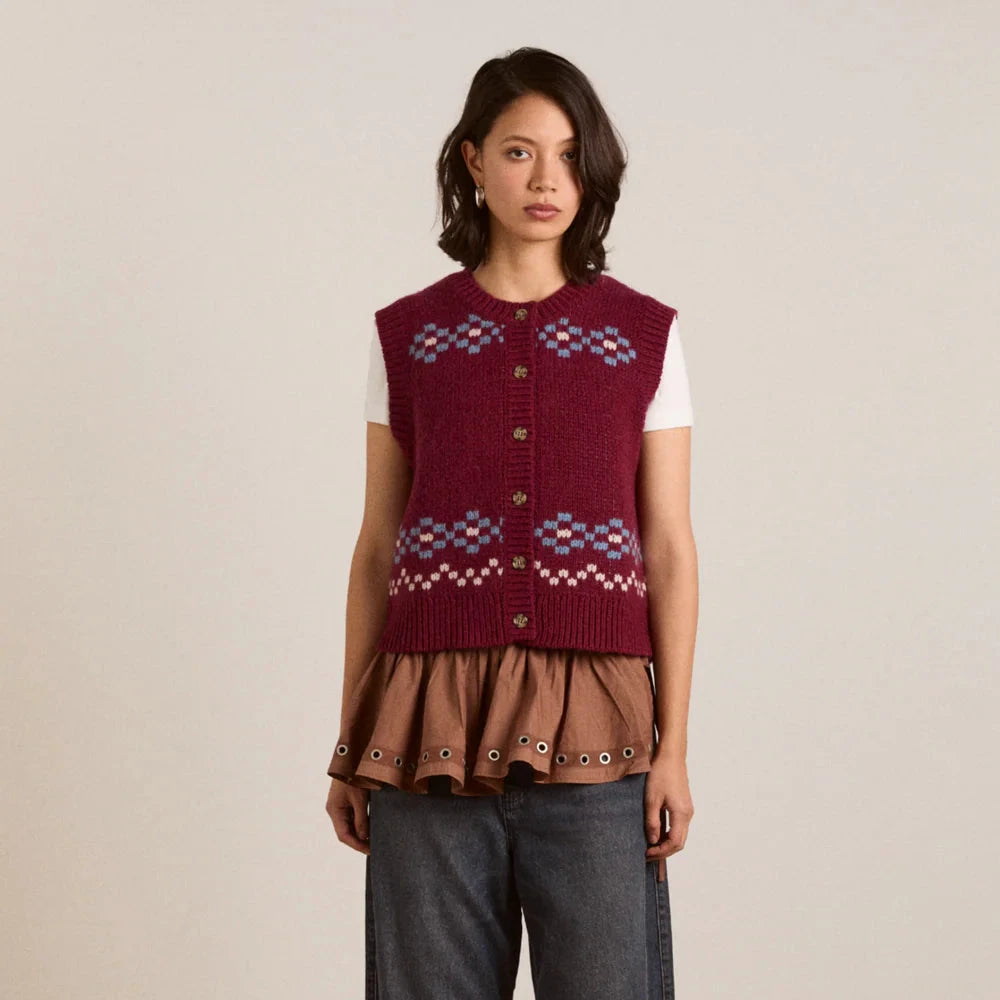 The Sofie Wool Vest features our signature novelty intarsia ‘Girls’ design across the back, a playful twist on a timeless silhouette. Crafted from 100% lambswool, this crew-neck, sleeveless vest is soft to the touch and designed to layer seamlessly through the seasons.