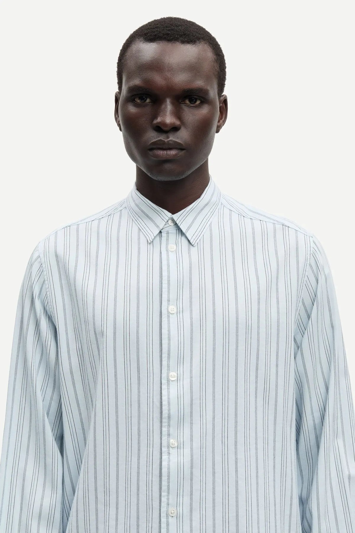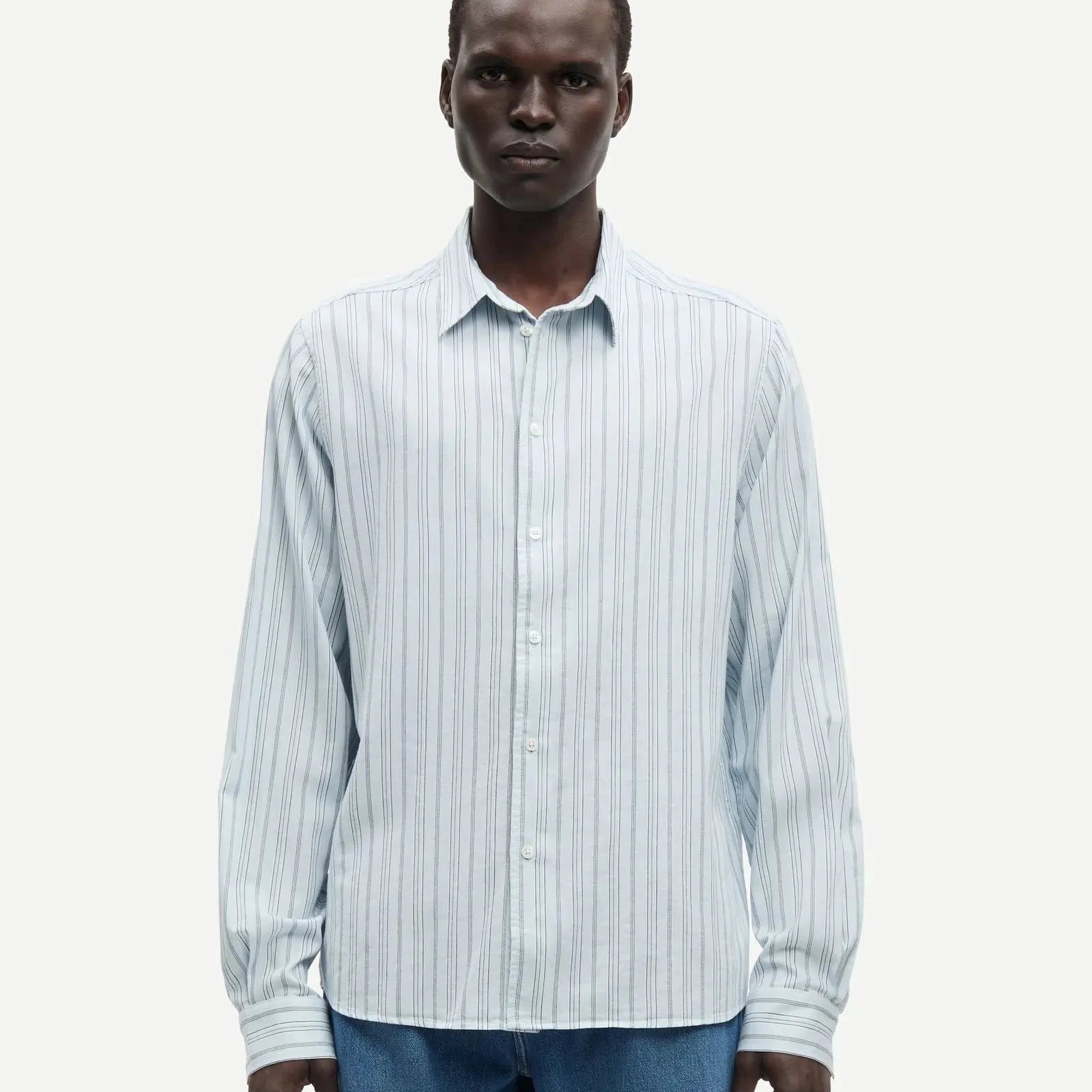 Long-sleeved shirt with a regular fit. Button closure on the front and buttoned cuffs. Neck yoke seam. Main material made from a blend of organic cotton and CIRCULOSE® viscose.